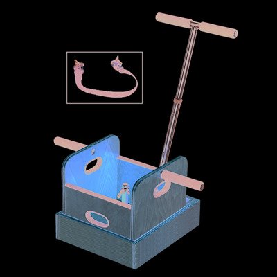 Accessory box and sled with t handle for work stimulation, conditioning and evaluation. Strap, foam covered hand grips and hand slots for lifting. Sled promotes push/pull activities. Box is 13.5 x 13.5 x 12″. sled is 16 x 13-5/8 x 6″; T-handle adjusts 32-44″ high; removable weight holder with weight Keeper; 10 lb. Empty, 80 lb. Capacity. Interchangeable box measures 16 x 13-5/8 x 6″; anti-friction runners.
