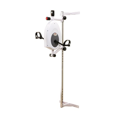The CanDo Magneciser pedal exerciser with height adjustable wall mount offers ultra-quiet magnetic, bi-directional resistance. Adjustable height allows for sitting, standing, or wheelchair access. Use for upper body (hand pedaling) and lower body (foot pedaling) exercises. Each unit comes with a fully automatic 5-function digital LCD display; speed, elapsed time, calories, distance and scan of all functions. Resistance is controlled by turning the resistance knob. Units use 2 AA batteries (included).